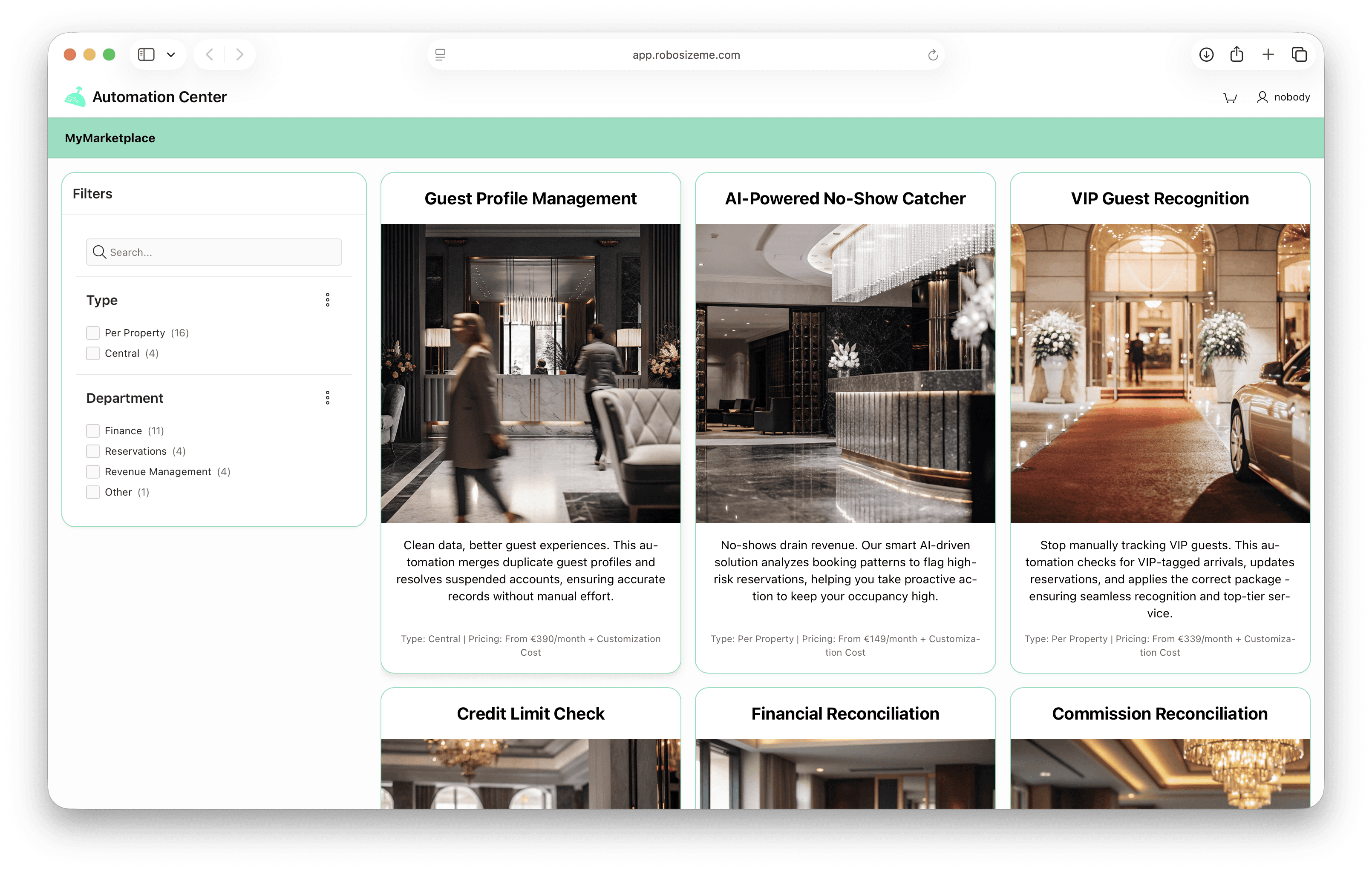 Each suite combines multiple automations that handle specific hotel tasks.